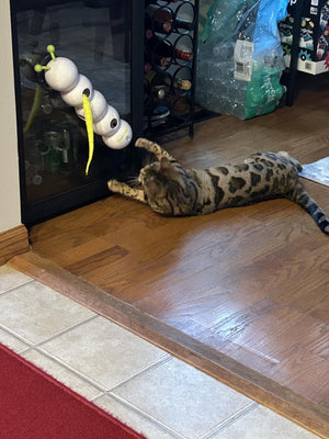 The toy activates when your cat approaches, offering a hands-free experience that stimulates playful interaction.
